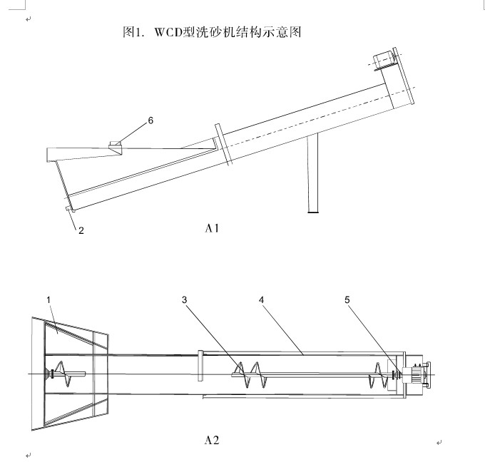 WCD螺旋洗砂機主要通過設(shè)備內(nèi)的螺旋裝置對砂石料進行攪拌,從而使砂石料中的泥土與水進行混合,從設(shè)備上的流口排出,而砂石料則在螺旋裝置的作用下被逐步篩選,從頂端的出料口排出,從而實現(xiàn)了砂石料的清洗篩選效果。